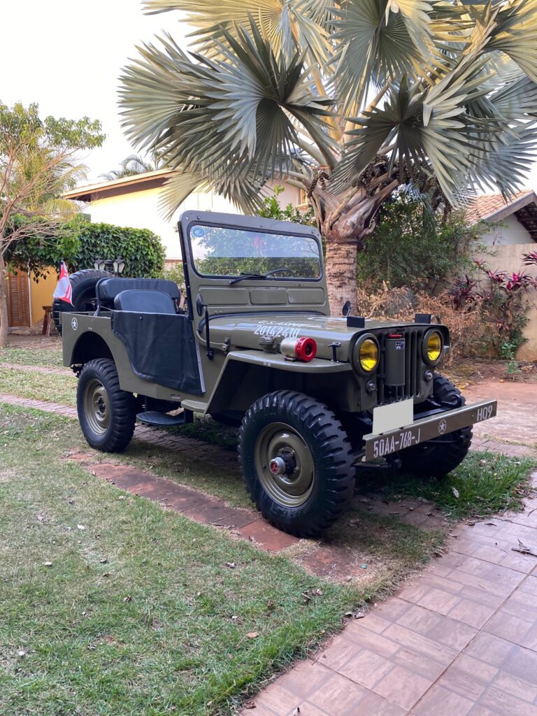 DESCRIÇÃO: PRA QUEM GOSTA DE VEÍCULOS MILITARES, TEMOS A VENDA ESSE LINDO JEEP WILLYS MILITARIZADO, ANO 1950, TEVE UMA REPINTURA 5 ANOS ATRÁS, MANTENDO TODO SEU PADRÃO ORIGINAL, RICO EM ACESSÓRIOS ORIGINAIS, MOTOR 4CC, 12 VOLTS, POSSUI 4X4 E REDUZIDA FUNCIONANDO, INTERIOR ORIGINAL, PARTIDA NO PÉ, TODOS INSTRUMENTOS FUNCIONANDO. POSSUI RÁDIO PX 24V FUNCIONANDO, TOMADA DE FORÇA EM SUA TRASEIRA, ENGATE ORIGINAL, SUPORTE PRA ANTENA PX, BANCO TRASEIRO, PNEUS ORIGINAIS NOVOS COMPRADO ANO PASSADO. VEÍCULO FUNCIONANDO PERFEITAMENTE, MUITO MACIO E CONFORTÁVEL. DOCUMENTAÇÃO EM DIA.